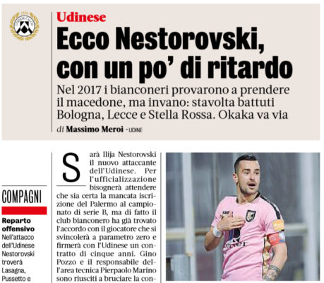 Il Palermo destino alla Serie D sta perdendo i pezzi, Nestorovski ormai è un nuovo giocatore dell'Udinese, l'ufficializzazione arriverà in...