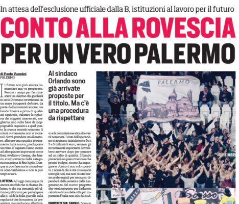 L'edizione odierna del "Corriere dello Sport" parla del futuro del Palermo. I tempi per far rinascere il club in serie...