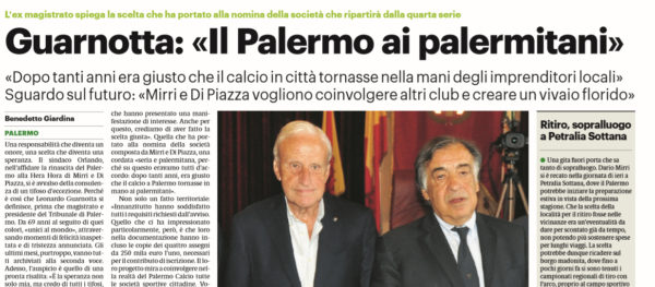 L'edizione odierna del "Giornale di Sicilia" riporta le parole del giudice Leonardo Guarnotta, storico tifoso rosanero, che ha aiutato il...