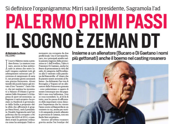 L'edizione odierna del "Corriere dello Sport" si sofferma sulla situazione allenatore e direttore sportivo del nuovo Palermo. Per il ruolo...