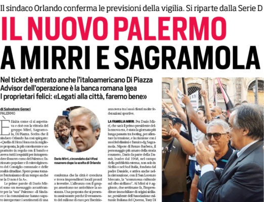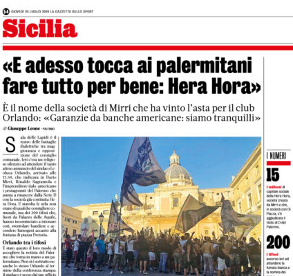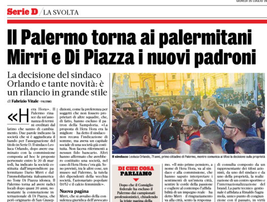 L'edizione odierna della "Gazzetta dello Sport" approfondisce la nascita del nuovo Palermo, scaturita dalla scelta di Hera Hora. Il sindaco...