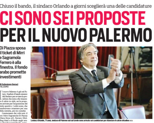 Sono sei le proposte per il nuovo Palermo. I tre "noti" sono: il trio Mirri-Sagramola-Di Piazza (Hera Hora srl), Ferrero...