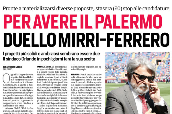 L'edizione odierna de "La Gazzetta dello Sport" ha analizzato quelli che sono i nomi dei pretendenti al Palermo, ma di...