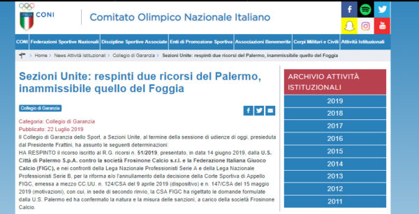 Il Frosinone Calcio S.r.l. comunica che, in data odierna, le Sezioni Unite del Collegio di Garanzia dello Sport del CONI...