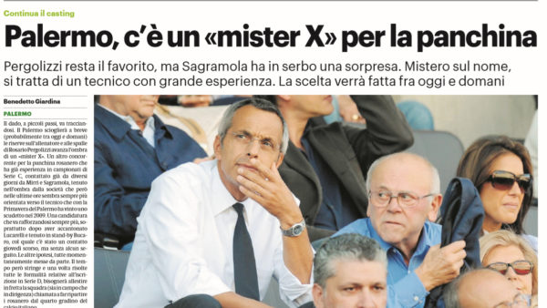 L'edizione odierna di "Repubblica" parla della scelta dell'allenatore del nuovo Palermo. Adesso i concorrenti sarebbero due: Pergolizzi e Bucaro. La...