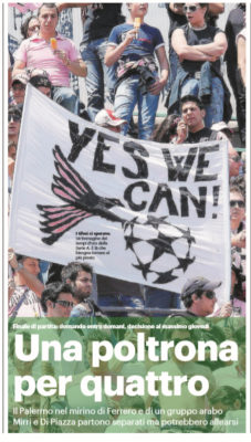 L'edizione odierna del "Giornale di Sicilia" approfondisce il progetto del fondo anglo-arabo per il nuovo Palermo. Si gioca tutto sul...