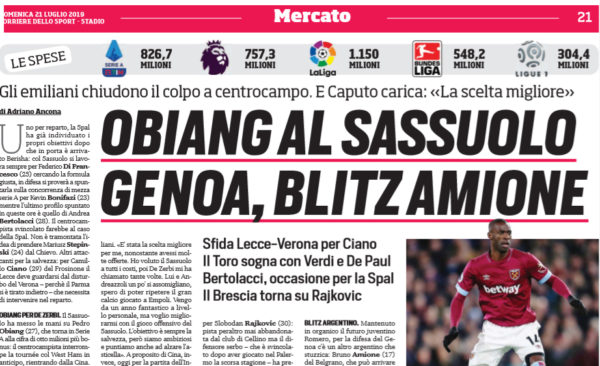L'edizione odierna del "Corriere dello Sport" analizza le principali trattative del giorno in Serie A. La Spal ha già individuato...
