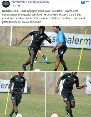 Con un post sulla propria pagina Facebook, la Parmonval ha augurato le migliori fortune all'ex difensore Marong Bubacarr. In foto,...