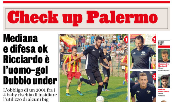 L'edizione odierna della "Gazzetta dello Sport" parla del primo impegno ufficiale del Palermo contro il Marsala. I rosanero dovranno sopperire...