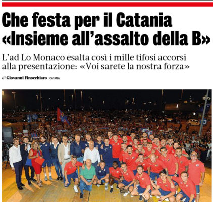 L'edizione odierna della "Gazzetta dello Sport" dedica spazio anche al Catania, che proverà quest'anno ad ottenere la promozione in serie...