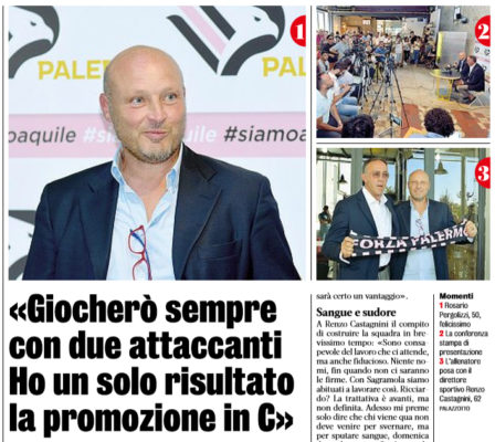 L'edizione odierna della "Gazzetta dello Sport" si sofferma sulle dichiarazioni di Rosario Pergolizzi, nuovo allenatore del Palermo: «È un onore...