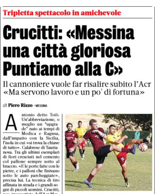 L'edizione odierna della "Gazzetta dello Sport" si sofferma sulle dichiarazioni di Antonio Crucitti, centrocampista del Messina: «Voglio arrivare sempre più...