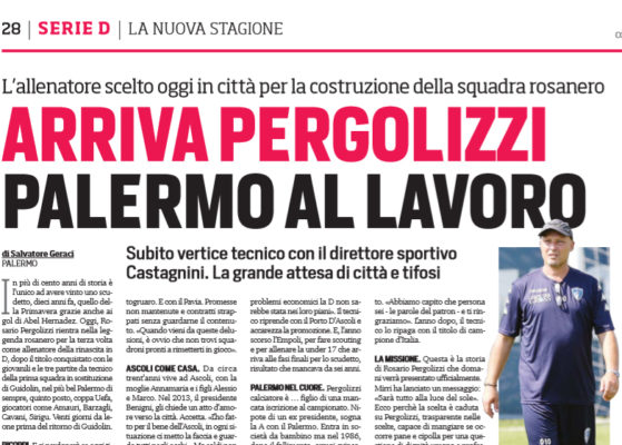 L'edizione odierna del "Corriere dello Sport" si sofferma sull'approdo di Pergolizzi sulla panchina del Palermo. Andò giù duro: «Dicono che...