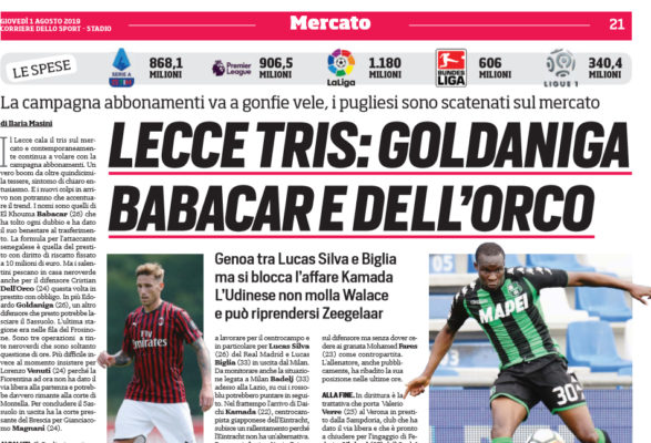 L'edizione odierna de "Il Corriere dello Sport" ha fatto il punto sulle trattativa di mercato aggiornate ad oggi in serie...