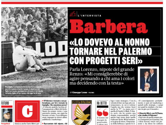L'edizione odierna della "Gazzetta dello Sport" riporta le dichiarazioni di Lorenzo Barbera, nipote del presidentissimo rosanero, coinvolto nel progetto del...