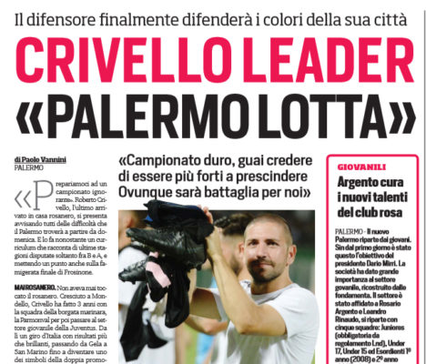 L'edizione odierna del "Corriere dello Sport" si sofferma sulle dichiarazioni di Roberto Crivello, difensore del Palermo: «Prepariamoci ad un campionato...