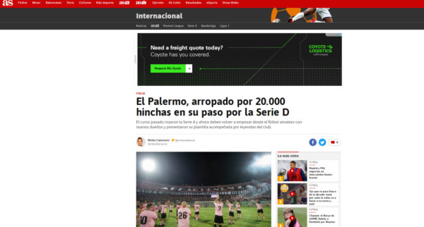 La rinascita del Palermo appassiona il mondo, il quotidiano spagnolo AS: “Passione senza categoria!” (FOTO)