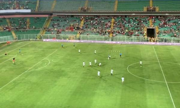 A pochi minuati dall'inizio de "la notte dei campioni", il Palermo scende in campo per iniziare il riscaldamento in vista...