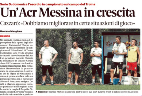 L'edizione odierna de "La Gazzetta del Sud" riporta le ultime in casa Acr Messina. È in arrivo l'attaccante classe '83...