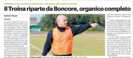 L'edizione odierna del "Giornale di Sicilia" si sofferma sul momento del Troina. E' arrivata l'ufficialità dell'atteso ritorno di Davide Boncore...