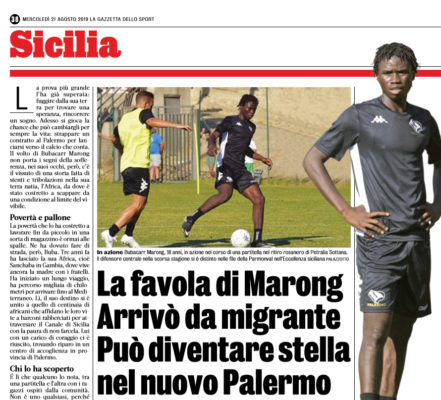 Gazzetta dello Sport: “La favola di Marong: arrivò da migrante. Può diventare stella nel nuovo Palermo”