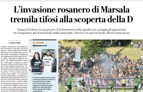 L'edizione odierna di "Repubblica", parla di "febbre rosanero" in vista dell'esordio del Palermo in campionato contro il Marsala previsto per...