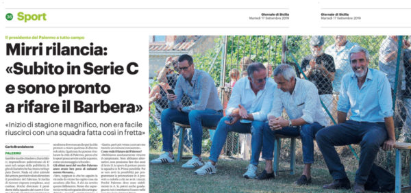 L'edizione odierna del "Giornale di Sicilia" riporta le dichiarazioni di Dario Mirri, presidente del Palermo. C’è anche Tony Di Piazza...