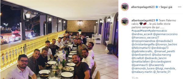 Attraverso il proprio profilo "Instagram", Alberto Pelagotti, portiere del Palermo, ha pubblicato una foto che lo ritrae a cena insieme...