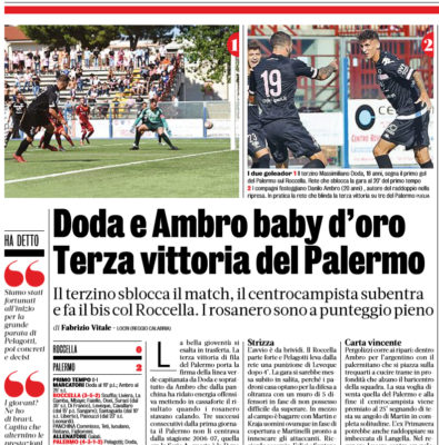 L'edizione odierna della "Gazzetta dello Sport" approfondisce la vittoria del Palermo sul Roccella. I rosanero sono stati trascinati da Doda...