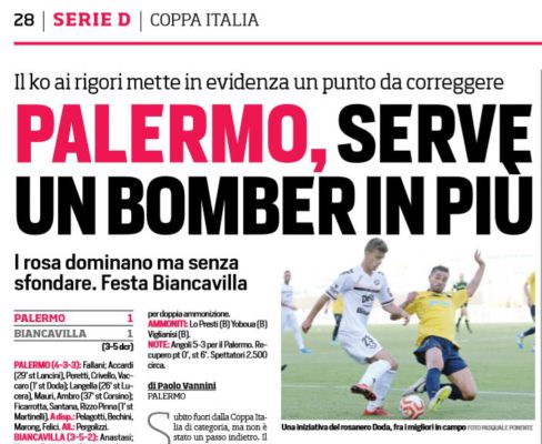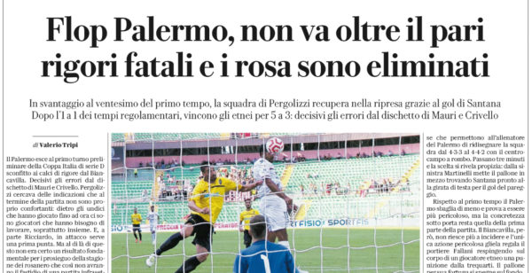 L'edizione odierna della "Gazzetta dello Sport" parla della sconfitta subita ieri dal Palermo ai calci di rigore contro il Biancavilla...