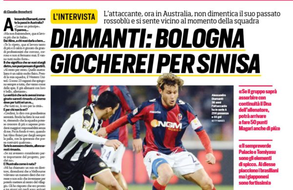 L'edizione odierna del "Corriere dello Sport" riporta le parole di Alessandro Diamanti, che ha svelato un retroscena che risale ai...