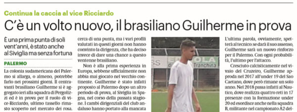 L'edizione odierna del "Giornale di Sicilia" si sofferma sul calciomercato del Palermo. Ieri si aggregato alla squadra il centravanti brasiliano...