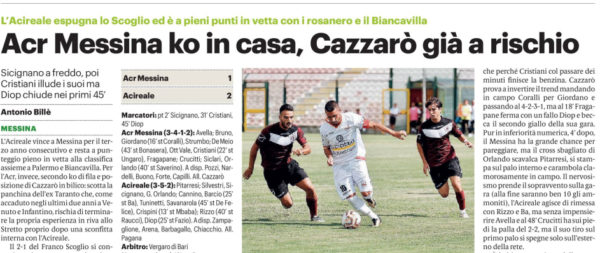 L'edizione odierna del "Giornale di Sicilia" si sofferma sul momento negativo dell'ACR Messina. Con l'Acireale è seconda sconfitta consecutiva per...