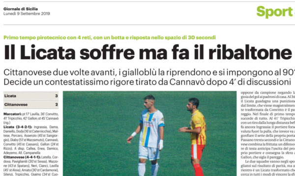 L'edizione odierna del "Giornale di Sicilia" analizza la vittoria interna del Licata contro la Cittanovese. Tre punti sofferti con un...
