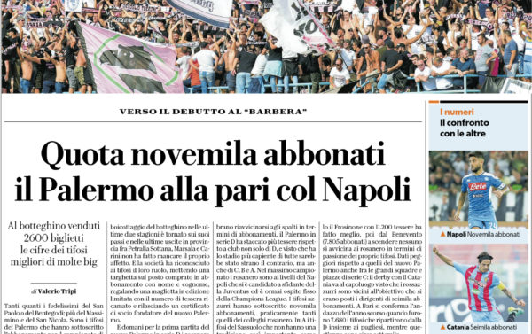 Ieri si è chiusa la campagna abbonamenti del Palermo, i rosanero hanno sfiorato il record del Parma in Serie D,...