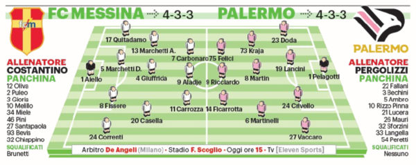 L'edizione odierna del "Giornale di Sicilia" si sofferma sulle probabili formazioni della sfida tra FC Messina e Palermo. In foto,...