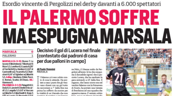 L'edizione odierna del "Corriere dello Sport" riporta le pagelle di Marsala-Palermo. MARSALA (4-3-3): Russo 7; Lo Iacono 6 Monteleone 7...
