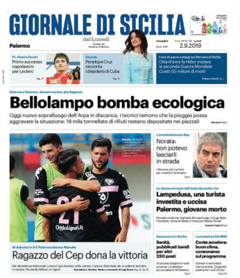 La prima pagina dell'edizione odierna del "Giornale di Sicilia" mette in risalto la vittoria del Palermo, trascinato dall'attaccante Raimondo Lucera,...