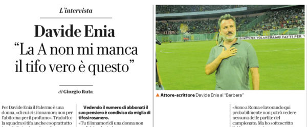 L'edizione odierna de "La Repubblica" ha intervistato Davide Enia. Ecco alcune sue parole: «Non mi manca la serie A in...