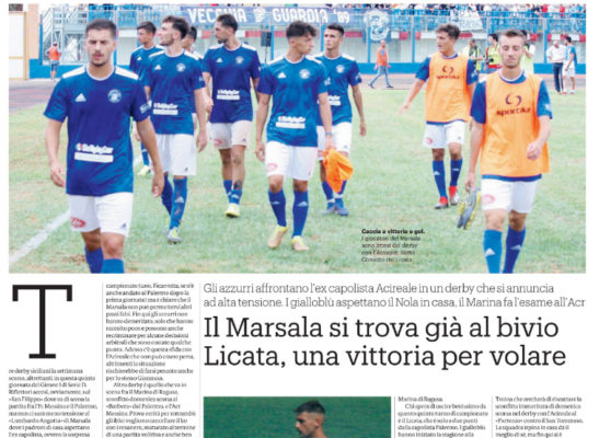 L'edizione odierna del "Giornale di Sicilia" analizza le sfide della quinta giornata del Girone I di Serie D. Tre derby...