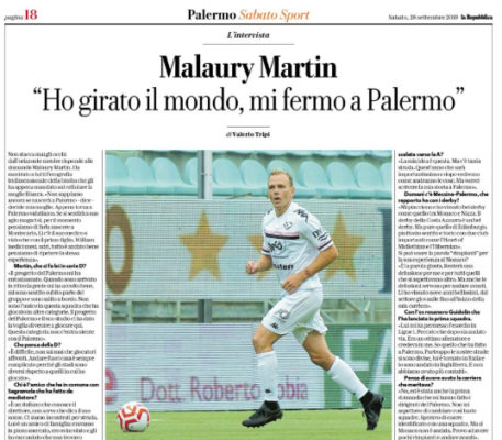 L'edizione odierna de "La Repubblica" riporta le dichiarazioni di Malaury Martin, centrocampista del Palermo. Martin, che ci fa lei in...