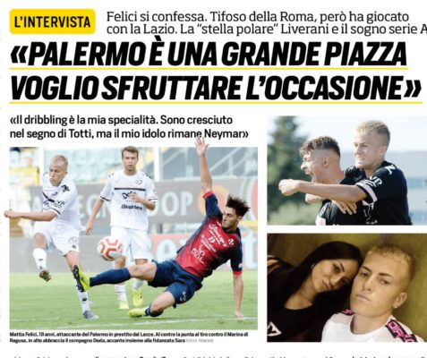 L'edizione odierna del "Corriere dello Sport" riporta le dichiarazioni di Mattia Felici, trequartista del Palermo. Com'è nato l'amore per il...