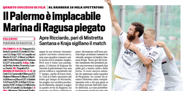 L'edizione odierna del "Corriere dello Sport" parla dell vittoria di ieri del Palermo contro il Marina di Ragusa. Due magina...