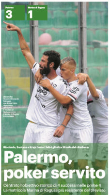 L'edizione odierna del "Giornale di Sicilia" parla della vittoria di ieri del Palermo contro il Marina di Ragusa. Per un...