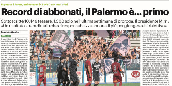 Il Palermo avrà, da qui al termine della stagione, la sicurezza di poter contare su almeno 10.446 tifosi presenti sugli...