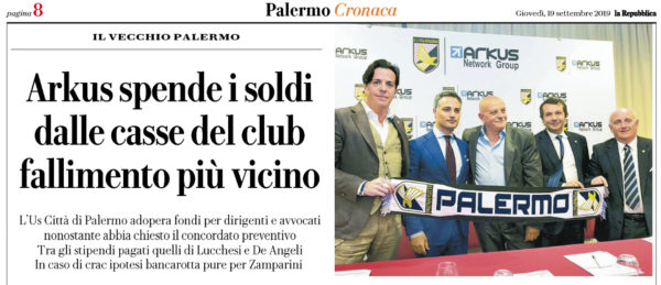 L'edizione odierna di "Repubblica" parla degli amministratori della vecchia U.S Città di Palermo che pare stiano spendendo gli ultimi soldi...