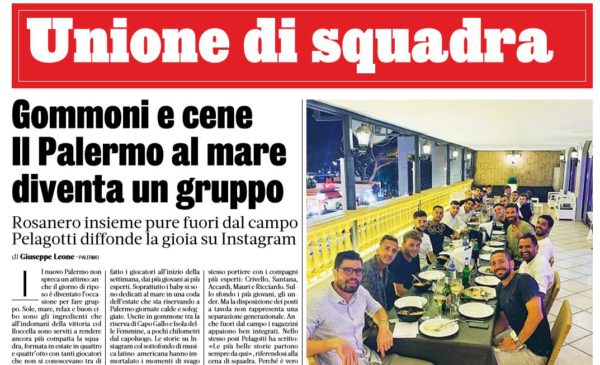 L'edizione odierna della "Gazzetta dello Sport" si sofferma sui calciatori del Palermo che fanno gruppo tra cene e social. Dopo...