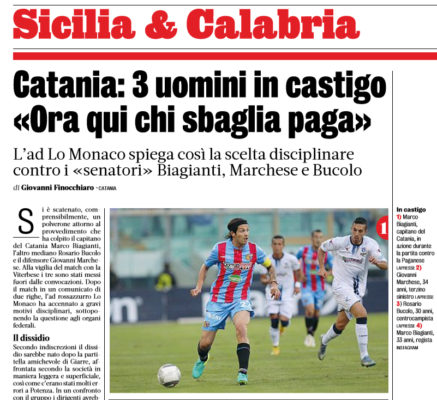 Situazione di caos nel Catania dopo il provvedimento che ha colpito il capitano Marco Biagianti, Rosario Bucolo e Giovanni Marchese....