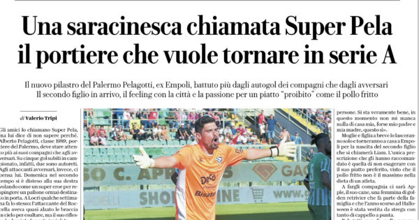 L'edizione odierna de "La Repubblica" esalta le prestazioni di Alberto Pelagotti, portiere del Palermo. A Biancavilla si è disteso alla...