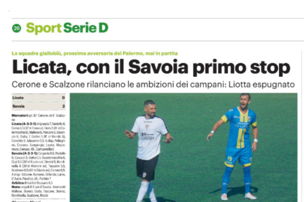 L'edizione odierna del "Giornale di Sicilia" si sofferma sulla prima sconfitta del Licata. Il Savoia conquista con merito il successo...